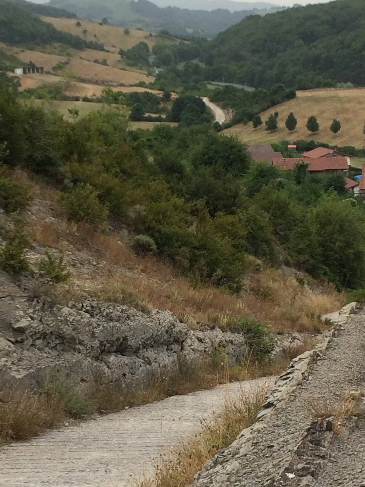 I was walking on my own for the first part of this stage so I didn't overhear any comments about incursions on and ruinations of nature; I guess there are many pilgrims who think the plant should be shut down and nature be allowed to reclaim the landscape. I'd have had to remind them, of course, that all human activity is nature and that the magnesium processing plant was as much part of the landscape as the churches, abbeys and cute little Roman bridges.